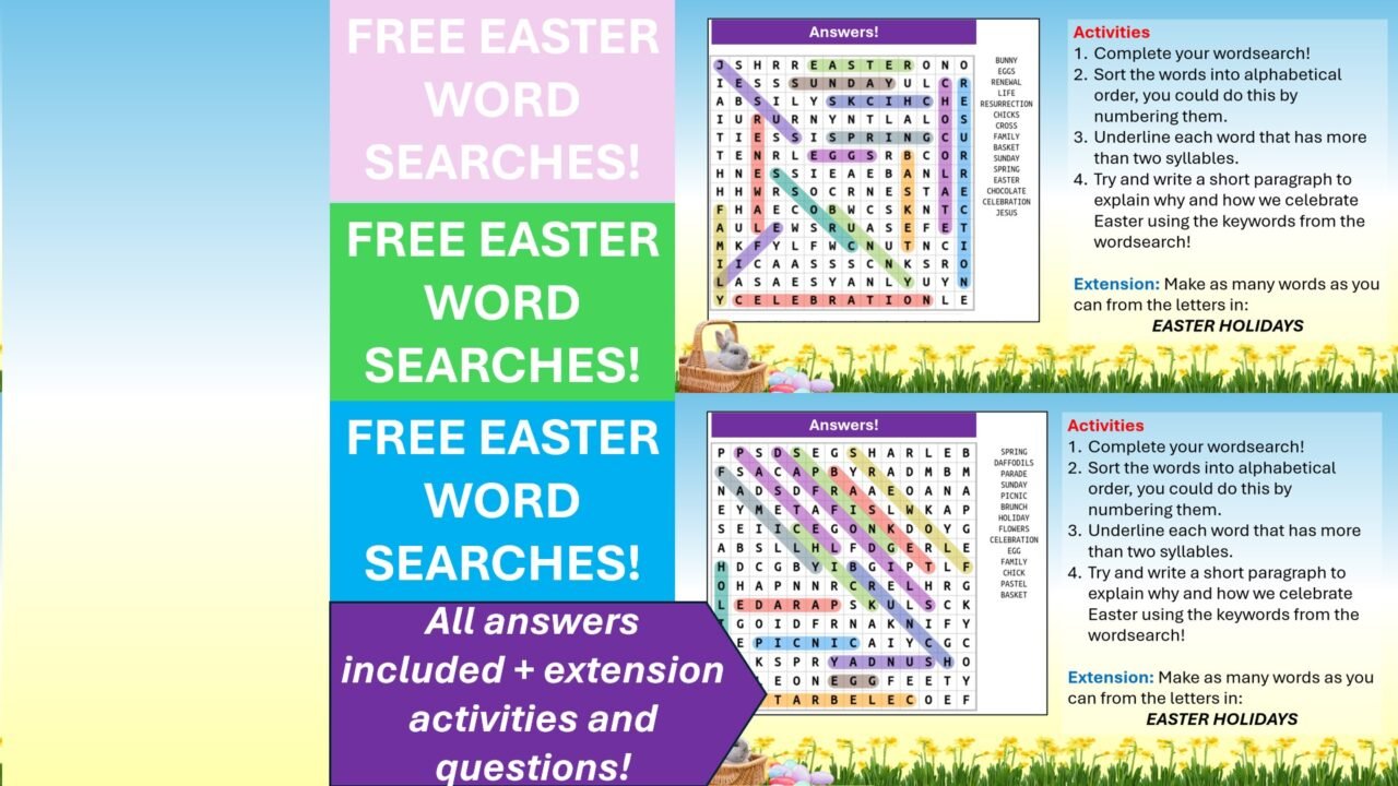 Easter Wordsearches FREE KS3 or KS4. Suitable for English, Maths, Geography, Science, RE, History
