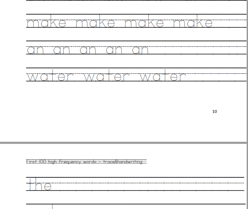 First 100 high frequency words – trace and handwriting practice