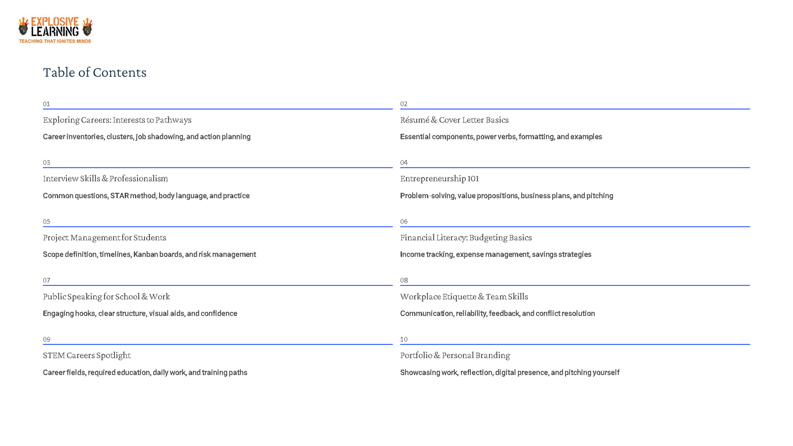 What Students Will Learn or Topics Covered: