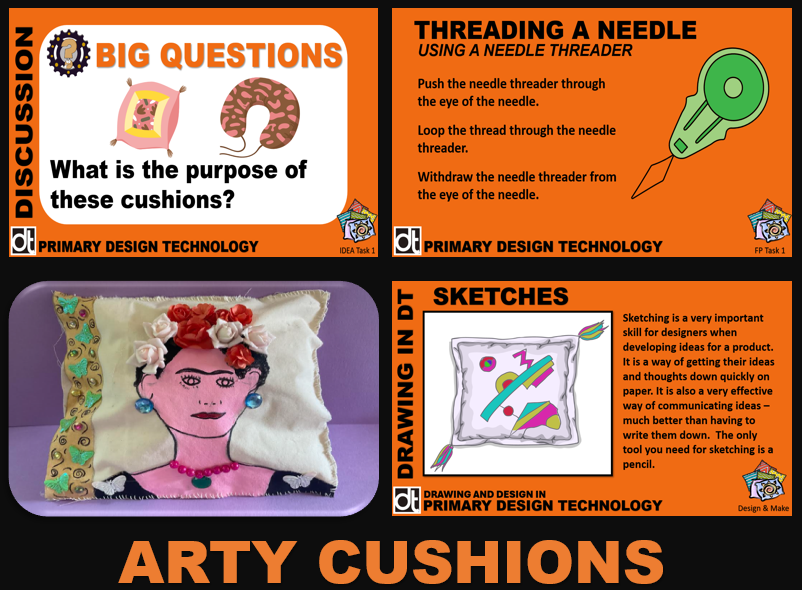 Using the design brief and specifications, they design a cushion cover based on a famous and iconic work of art. They use learnt techniques to make a cushion and a decorative cushion cover following the designs that they made. As part of the evaluation, children consider the skills that they used in designing and making the cushion product and also present their product in a Dragon’s Den simulation.