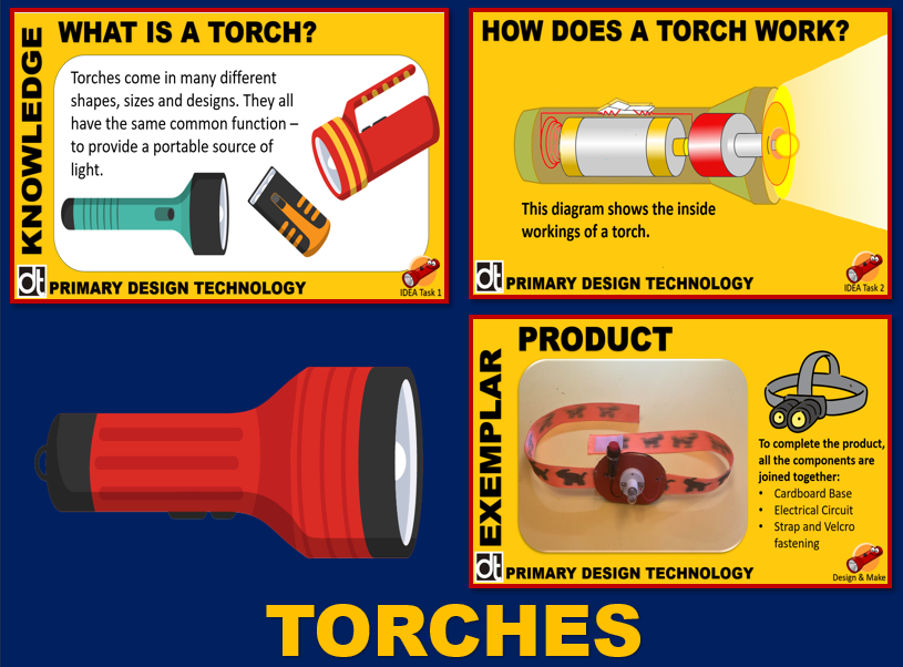 In this unit of work children are given the opportunity to apply their knowledge of creating simple electrical circuits to design and make a torch product. Using a range of electrical components, they create a hand torch that lights up when the switch is on. Children have the opportunity to develop brainstorming skills to investigate how a torch works and then use the same skills to develop ideas and to design their product. In this unit children are taught how cut-away drawings, labels and annotations can help to understand how a product has been made and functions. They use this knowledge to create an authentic ‘hands-free’ headlamp product for somebody who walks their dog at night. Having made their product and thinking about the appeal to the intended client, children design a poster to market and advertise their product.