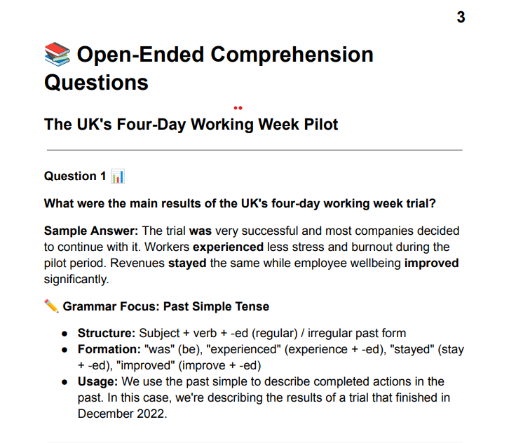 Explore the evidence behind the world’s most talked-about workplace revolution. This free conversation resource, based on reporting from The Conversation, breaks down the benefits of reduced work hours—such as lower burnout and higher retention—against the potential drawbacks for frontline and service-based roles. Includes key talking points, vocabulary, and data-driven insights to spark a meaningful dialogue on the future of productivity.