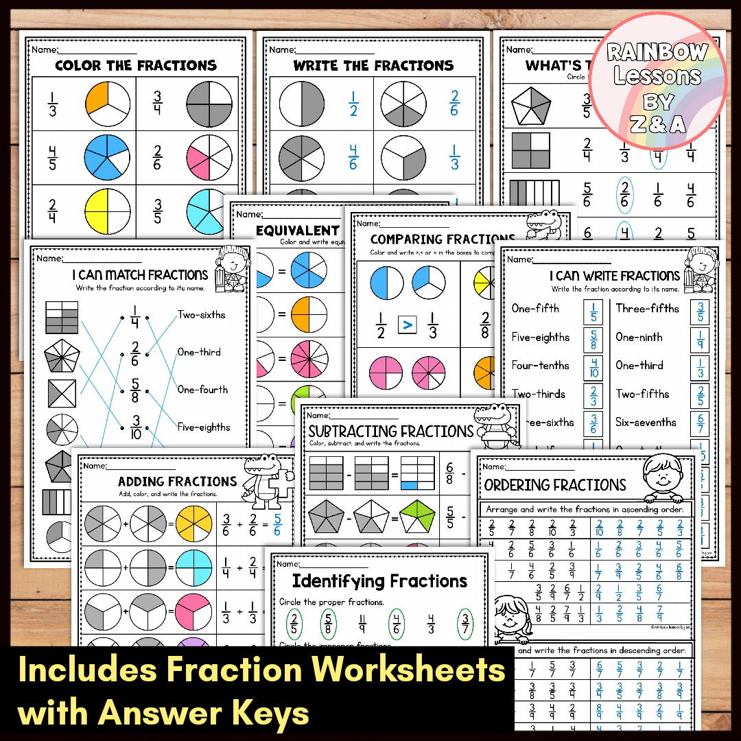 ✅ 11 Fractions Worksheets featuring: