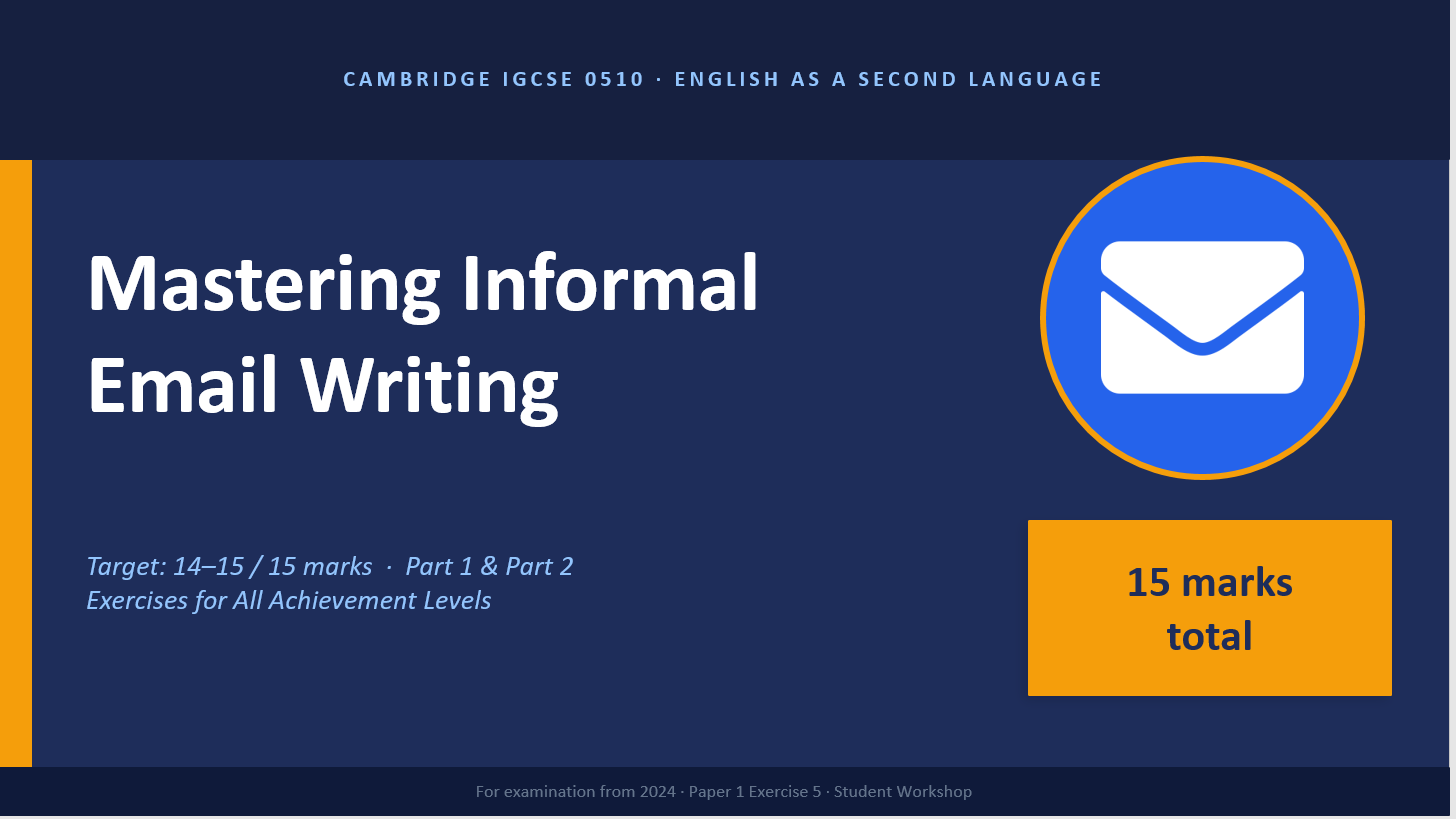 Topic & Year Group: IGCSE English as a Second Language (0510) – Essay Writing / Year 10–11