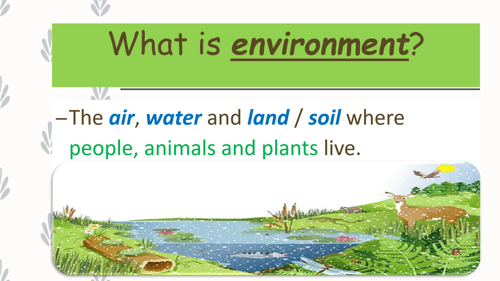 A well-designed and pictionary rich PowerPoint introduction to vocabulary about environment and ecology.