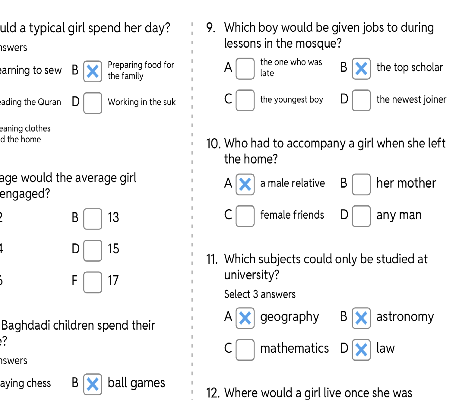 Two descriptions of a-day-in-the-life of a child in ancient Baghdad, one for a boy and one for a girl. Includes line numbers to support reading and information retrieval.