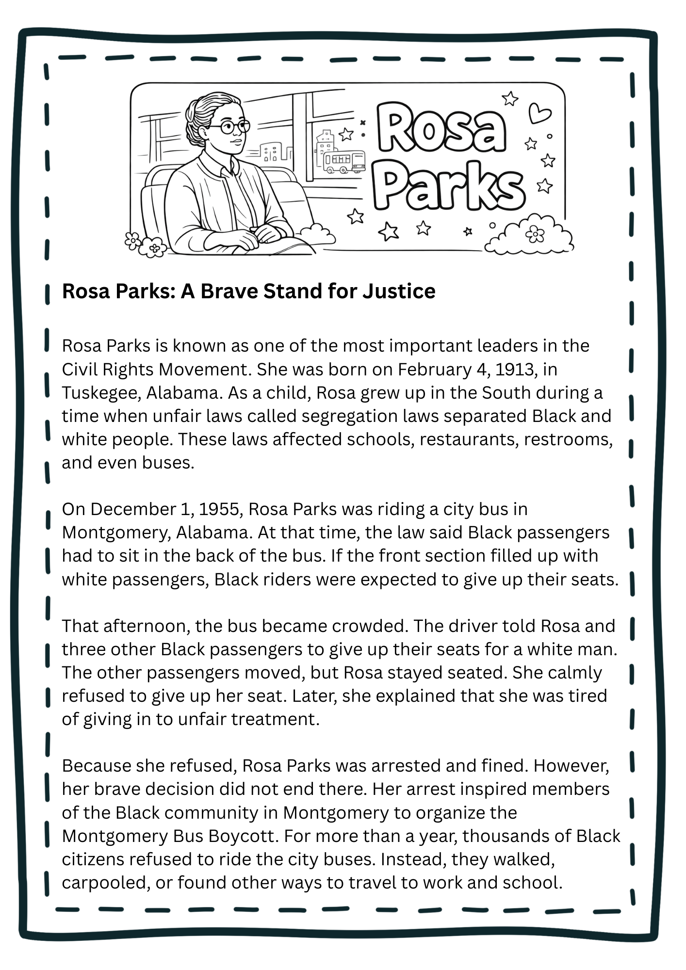 • Informative reading passage about Rosa Parks