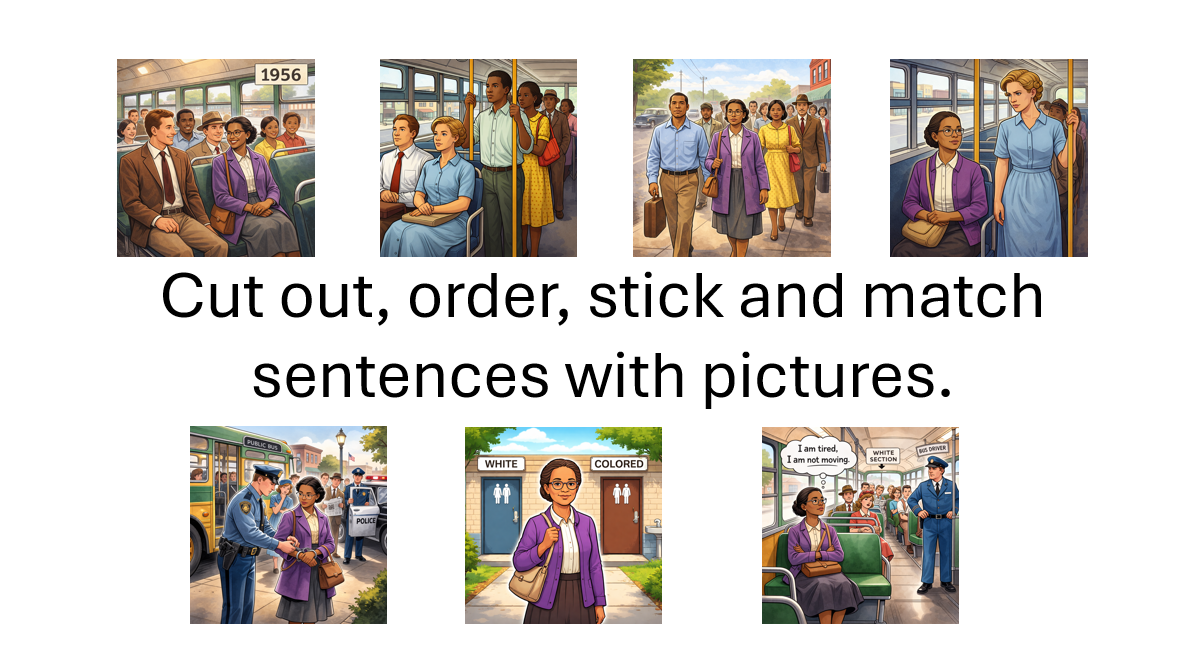 This engaging and accessible reading comprehension activity helps pupils learn about Rosa Parks, segregation, the Montgomery Bus Boycott, and the impact of the Civil Rights Movement.