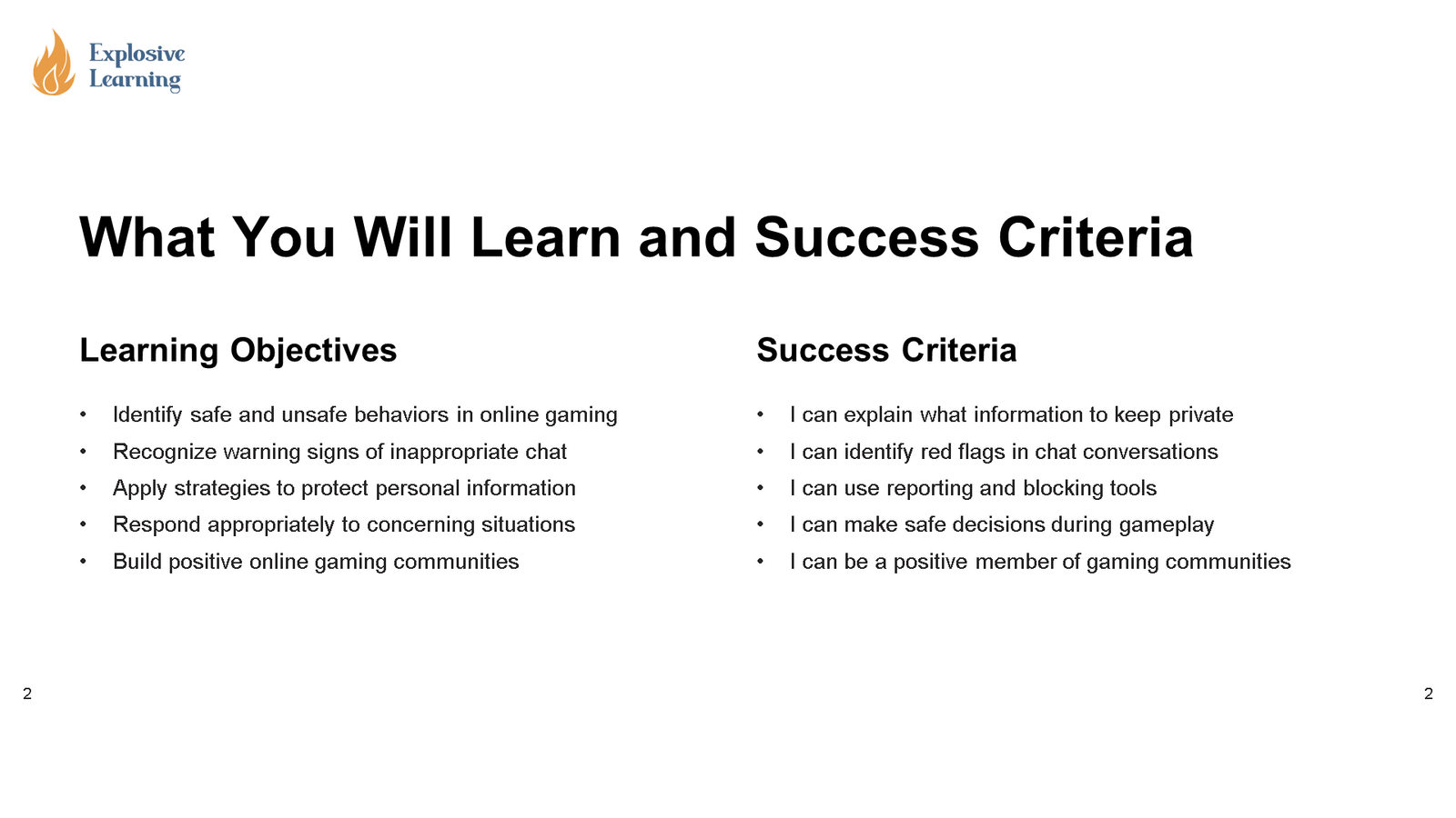 – Reflection or exit task: Students explain what they learned about Safe Gaming and In Game Chat Essential digital safety skills and use evidence from the lesson to support their thinking.