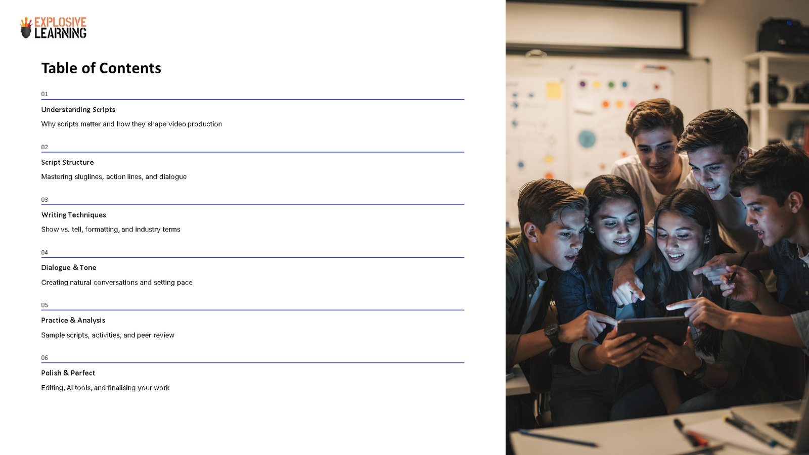 – Reflection or exit task: Students explain what they learned about Scriptwriting for Smartphone Video Production Complete Guide for and use evidence from the lesson to support their thinking.