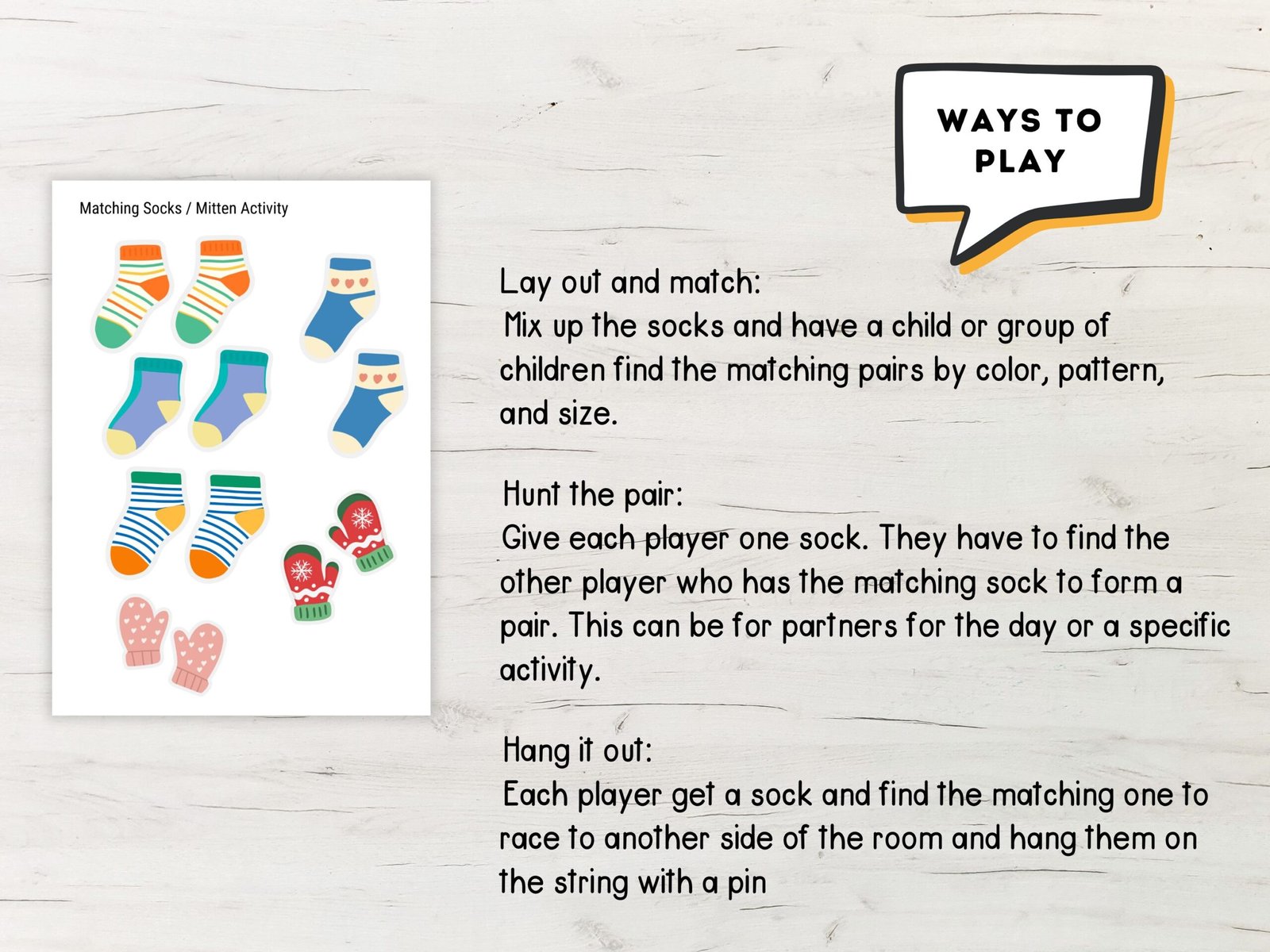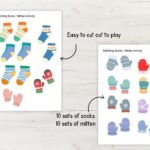 Match the socks and mitten toddler game activity, Printable toddler pretend play activity, Preschool homeschool indoor activity, party, classroom activity