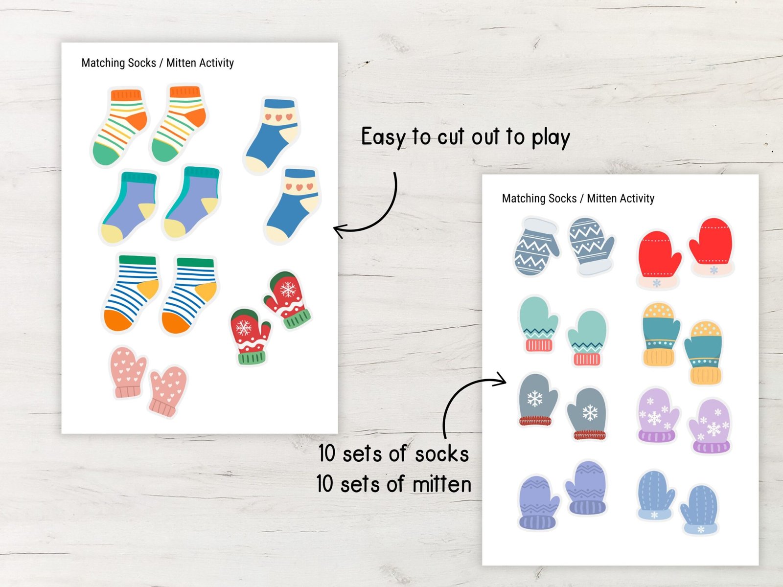 Enjoy this easy to cut and play match the socks and mitten activity that are perfect to keep the little hands busy and engaging. This is instant download and printable activity template that are ready for you.
