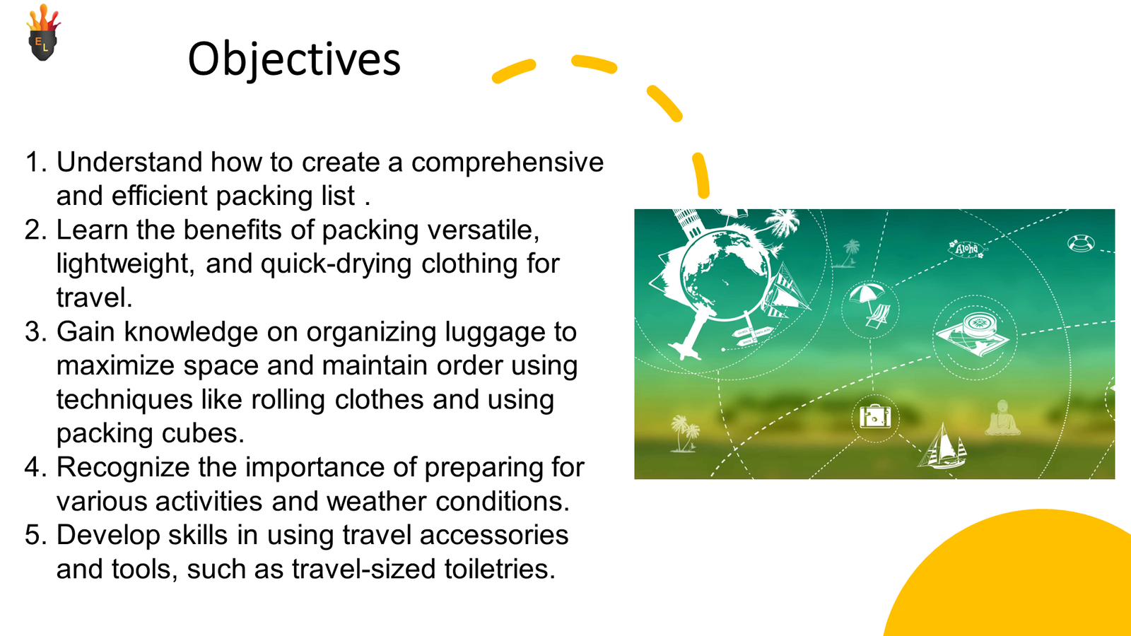 – key concepts and vocabulary connected to Wk 5 Travel 101 Packing tips and Tricks