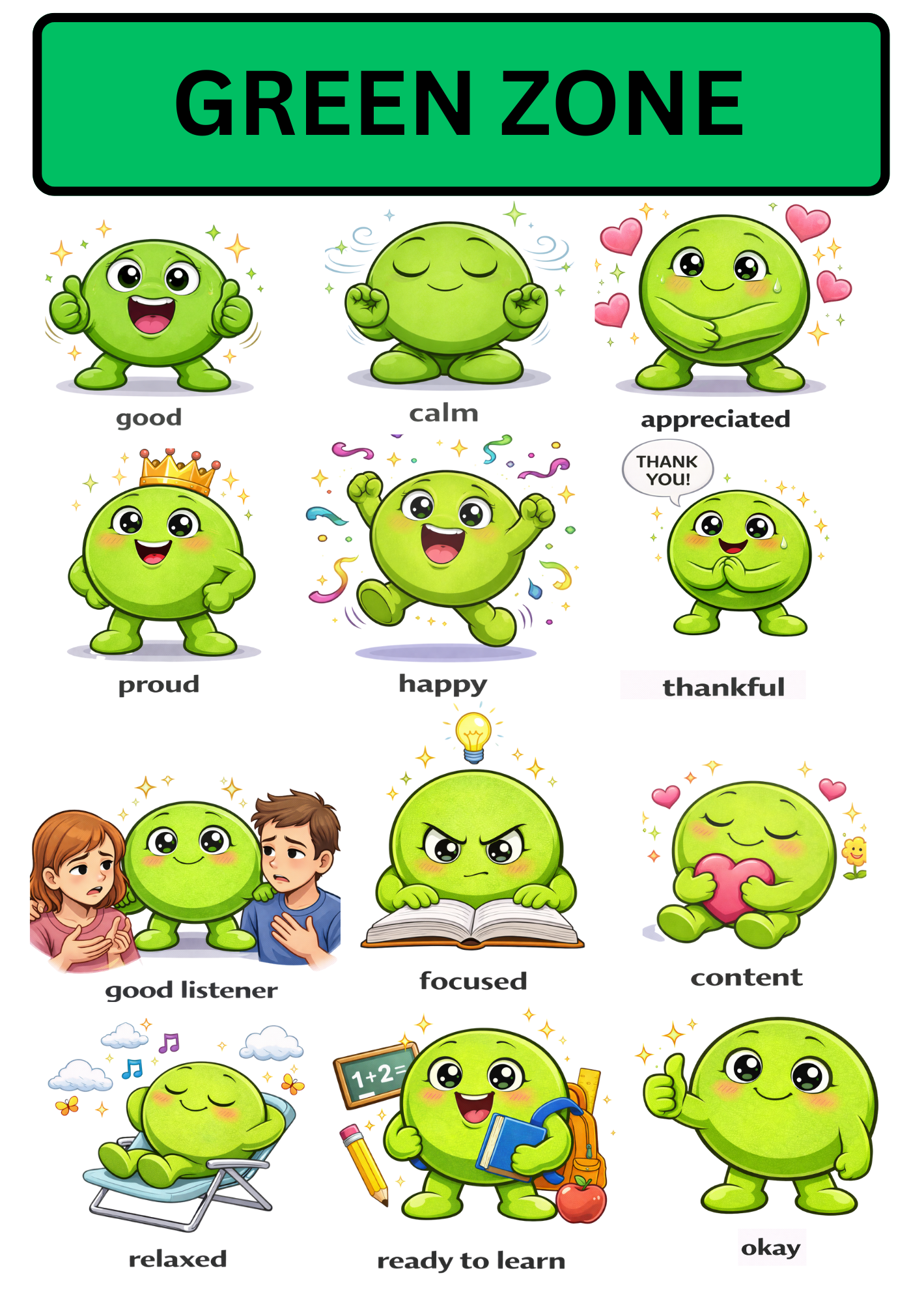 This comprehensive package (14 lessons) for the Zones of Regulation programme has been carefully designed to support children in understanding their emotions, recognising triggers, and developing effective self-regulation strategies. This pack contains, a 14 lesson bundle covering all the important categories of the Zones of Regulation with Lesson Plans and all Resources.